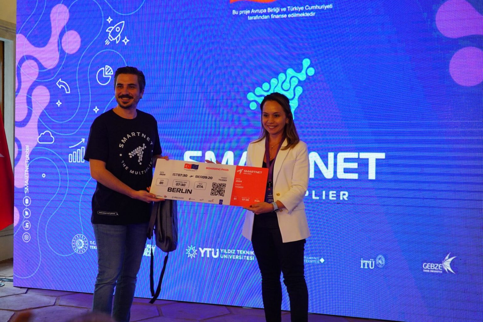 At the end of the programme, the startups that completed their presentations were presented with symbolic tickets and gifts for the Berlin study visit they will go to within the scope of SMARTNET to make contacts and meet with investors.